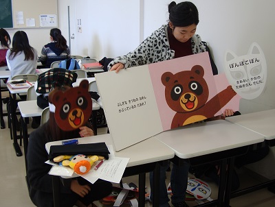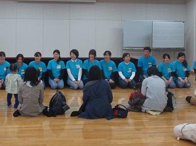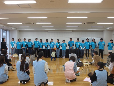 本番前のごあいさつ、緊張していた学生は子どもたちの様子に笑顔が広がります。