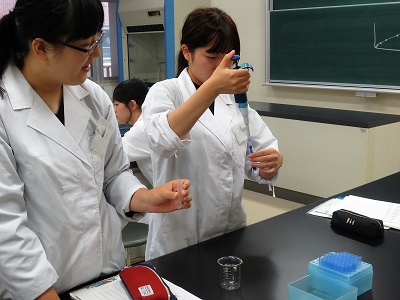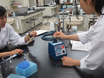 食物専攻では、調理に関する実習の他に、食品学や食品衛生学、生化学などに関する実験も行います。