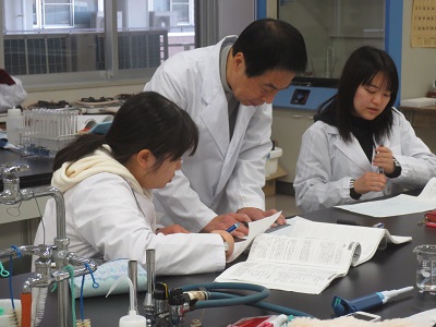 内容は科目によって様々ですが、一般的にはビーカーや試験管などのガラス器具を使用し、試料に試薬を加え、経過観察を経て得られた結果を考察していきます。