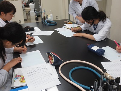 実験後は、目的や使用した試料・試薬・器具、操作方法、結果、考察などをレポートにまとめます。