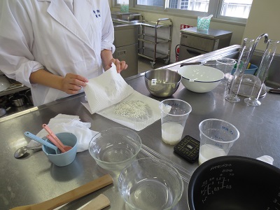 調理科学実験で「米に関する実験」を行いました。