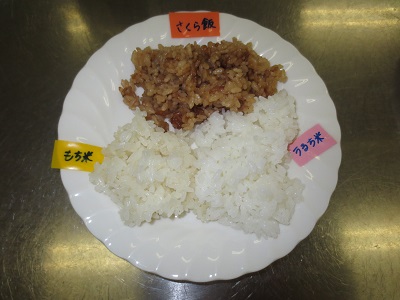 最後に「もち米」「うるち米」「さくら飯」3種類のご飯について官能検査です。