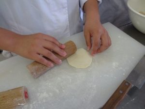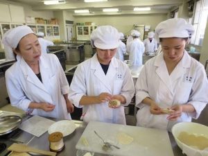 1年後期に開講される調理学実習Ⅱの授業で、『鍋貼餃子(クオティエチャオツ:焼きぎょうざ)』を作りました。