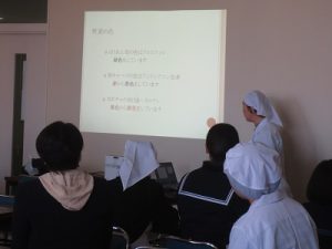 まずは講義です。テーマは「野菜を使ったプチケーキで、野菜の色のpHによる変化を見てみよう」です。