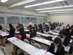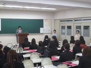 担任の先生より、栄養士の資格や学業、大学生活についてのお話しがありました。