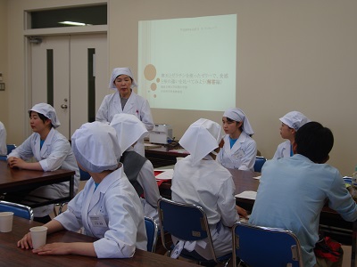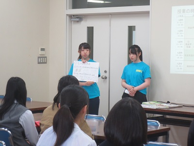 食物専攻では学科説明の後、学生の進行により2年生の先輩が入試の体験談を紹介しました。