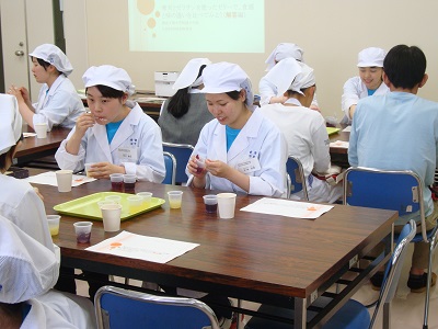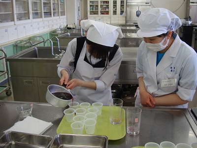 午後からは、大学の授業「調理科学実験」を実際に体験します。テーマは「寒天とゼラチンを使ったゼリーで、食感と味の違いを比べてみよう」です。
