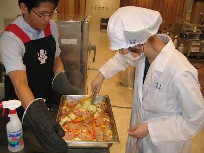 食物専攻2年は、給食運営管理実習の一環として、電化厨房体験セミナーを受講しました。