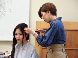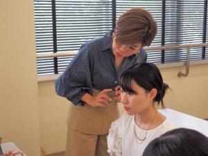 みんな興味深々、普段のメイク法も沢山教えていただきました。