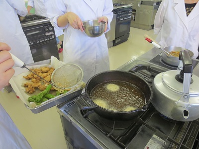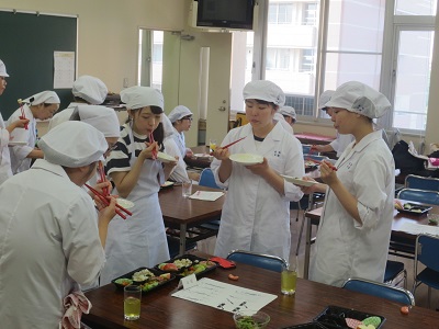 それに先立ち、「栄養指導実習Ⅱ」の授業で徳島の食材を用いた献立を考え、試作をしました。