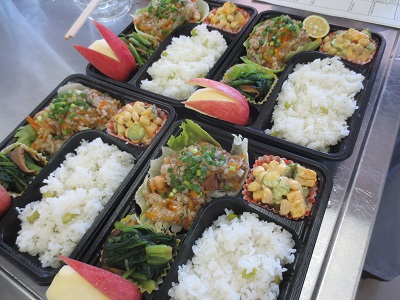 試作後、お弁当の試食をして味や盛り付け、量の確認をしました。