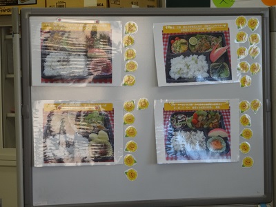 これまでのオープンキャンパスで、高校生の皆さまに学生考案の弁当4種類を紹介し、気にいった弁当に投票をしていただきました。