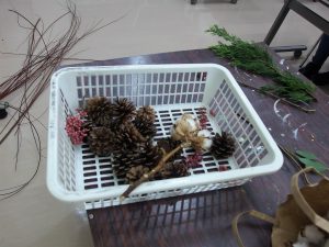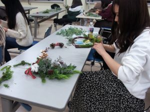 2年生後期のブライダルフラワー授業風景です。今日はクリスマス飾りを作りました。