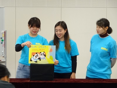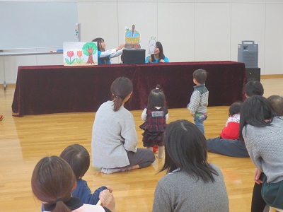 最初は紙芝居「タンタンテンテンいっしょにごあいさつ」です。