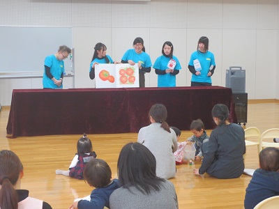 保育科主催ペンギンクラブの第7回目に食物専攻2年生が食育を実施しました。
