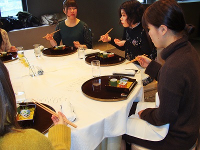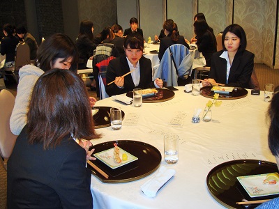 1月31日、食物専攻と商科合同で淡路島のホテルアナガにおいて、和食のテーブルマナー研修を行いました。