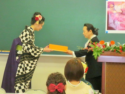 栄養士養成施設で学業が優秀な吉鷹秋帆さんに贈られました。