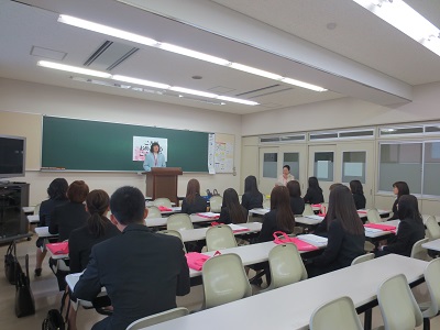 担任の先生より、栄養士の資格や学業、大学生活についてのお話しがありました。