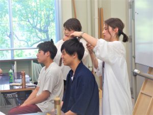 本日のブライダルコーディネート授業はブライダル用メイク&ヘアーアレンジです。