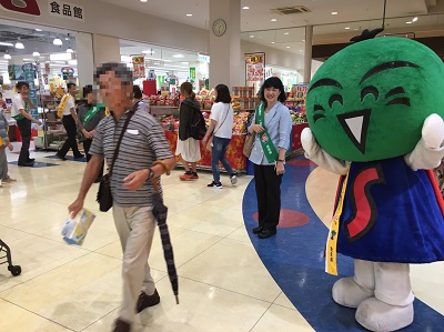 すだちくんと一緒に啓発グッズを配布しています。