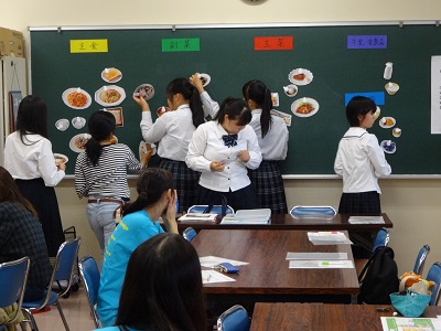 引き続いて実施した模擬授業では、「栄養指導に挑戦してみよう~バランスのとれた食事って何だろう~」を題して、食事バランスガイドを用いて食事を見直しました。