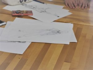 ブライダルファッションコースはファッションデザイン画の授業です。ミーティング中のようですね。