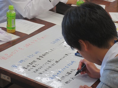 グループ討論をして、皆の意見をまとめて書いています。