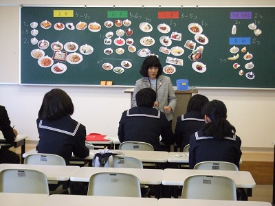 公開日 2019年11月21日 11月20日(水) 池田高校辻校の1年生が大学見学に来られ、「栄養指導をしてみよう」の授業を行いました。 食事バランスガイドを用いて食事について真剣に考えています。 食物専攻の学びを体験していただきました。