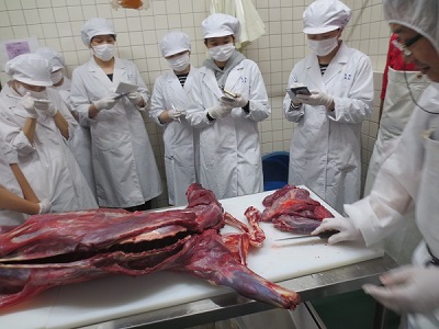 それぞれの部位に分けたあとは真空パックをして大学に持ち帰り、後日、学生食堂で提供するメニューの試作用として使用します。