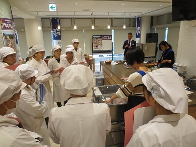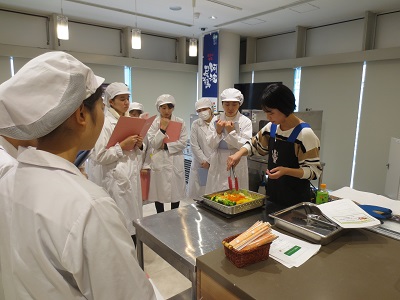 食物専攻2年生が調理科学実験の授業の一環として、ヨンデンプラザ徳島で開催された「未来の栄養士、調理師のための電化厨房体験セミナー」を受講しました。
