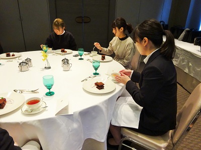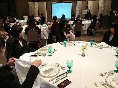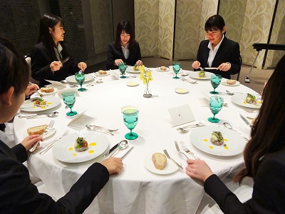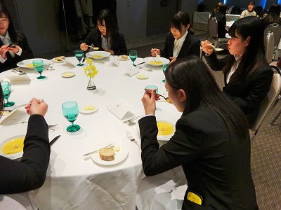 1月31日、食物専攻1年2年合同で淡路島のホテルアナガにおいて、洋食のテーブルマナー研修を行いました。