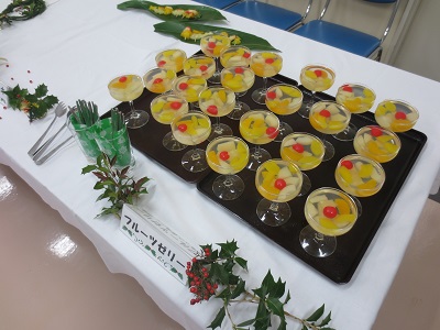 2年生後期開講の栄養学各論実習では、行事食としてクリスマスバイキングを実施します。
