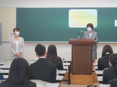 教室へ移動し、新入生オリエンテーションを行いました。