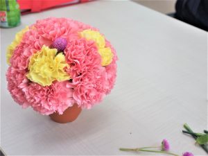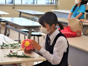 1日目の模擬授業はファッションブライダル授業、 フラワーアレンジメントを学びました。