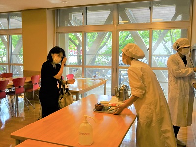 本来なら、にぎやかな時間帯ですが、今回はソーシャルディスタンスを保ち、会話も控えた静かな昼食時間となりました。
