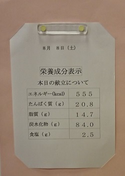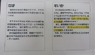 栄養成分表示と、献立材料に関連した情報提供も行いました。
