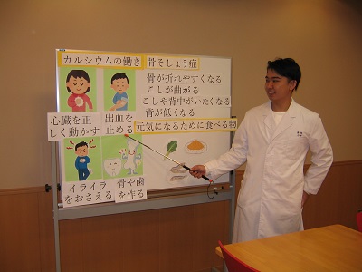食育授業では教壇に立ち、児童を対象に分かりやすく伝わるよう工夫して、「カルシウムの働き」について説明をする機会を頂き、貴重な経験を得ることができました。