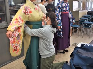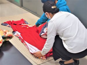 本日は結婚式衣装、特に和装について学びました。 和装は着こなしのルールが沢山あります。そして、実際に着付けも学びました。