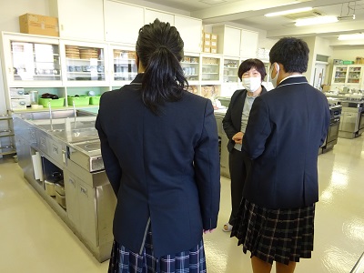 食物専攻1年生の授業「食品加工学Ⅰ」を見学後、学科説明を行いました。