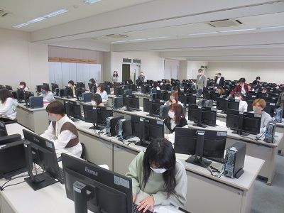 感染防止対策を取り、学内パソコン室を使用して履修科目の登録をしました。