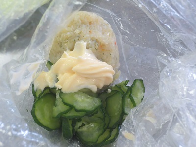 塩もみした小口切りのきゅうり、マヨネーズを加えて混ぜたら出来上がり。