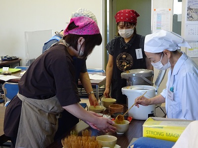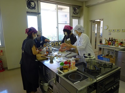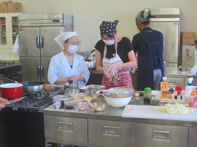 続いて、長尾准教授と佐賀准教授による地産野菜などを利用した実習です。