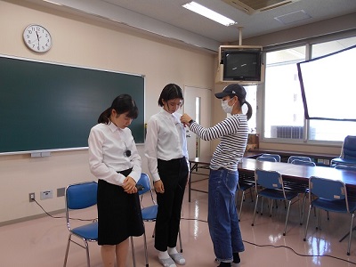 打合せの後、マイクを付けて撮影開始です。