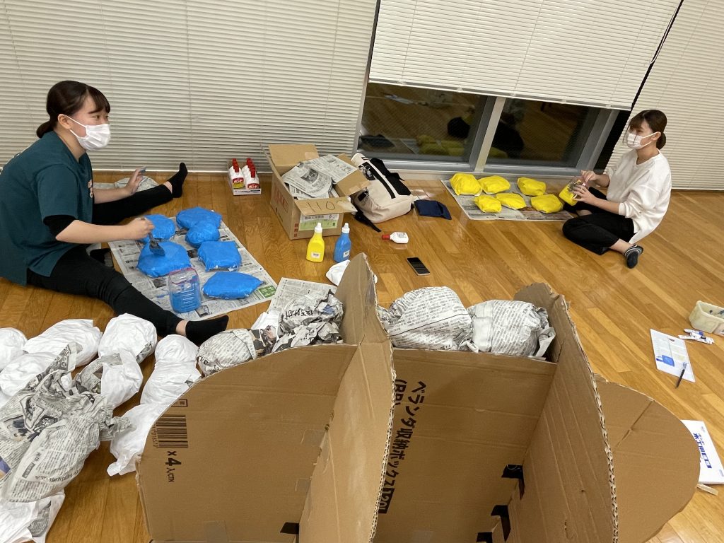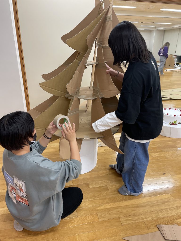 公開日 2021年11月05日 毎日、25号館8階では学生たちが「おとぎのくに」に向けて道具の制作や練習に励んでいます。 1年生には初めての経験です。何を使ってどのくらいの大きさのものを作るのか…試行錯誤の連続です。 ダンスもがんばっています。 本番は12月2日(木)・3日(金)の2日間。10:00~11:30、むらさきホールです。お時間のある方はぜひご観覧ください。