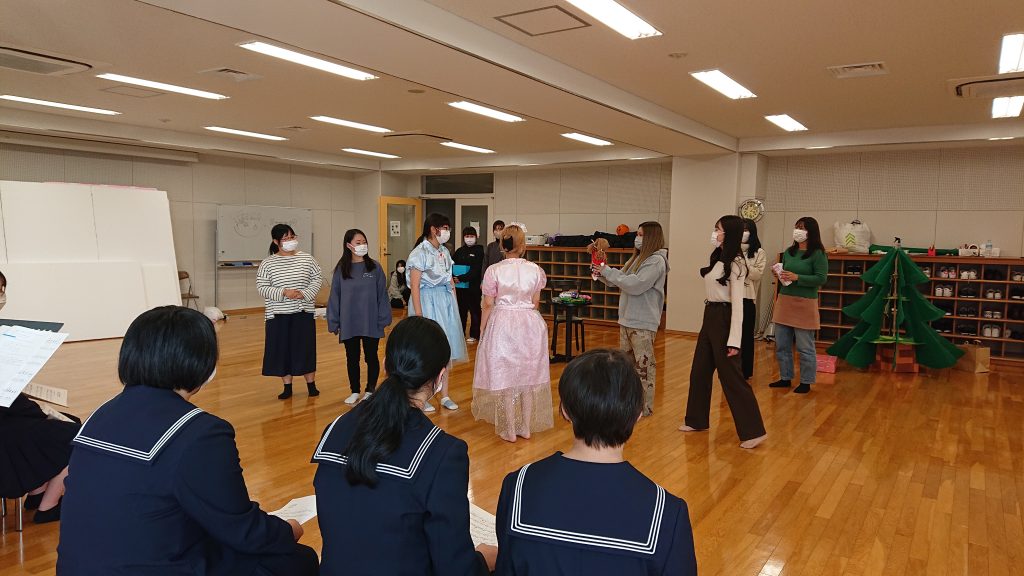 公開日 2021年11月17日 徳島県立池田高校の1年生8名が保育科の見学に来てくれました。 今、保育科ではおとぎのくにの練習が佳境を迎えています。 そこで、今回は2年生のハンドベル、合唱、ミュージカルの練習の様子を見てもらいました。 本番まであと2週間。毎年ここから飛躍的に完成度が上がります。高校生の皆さんにもぜひ見てほしいです。