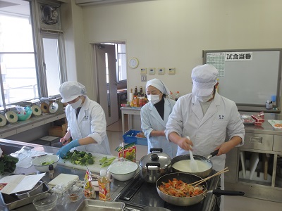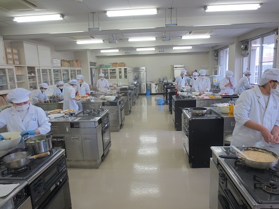 2年生後期開講の栄養学各論実習では、行事食としてクリスマスバイキングを実施します。