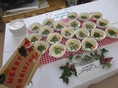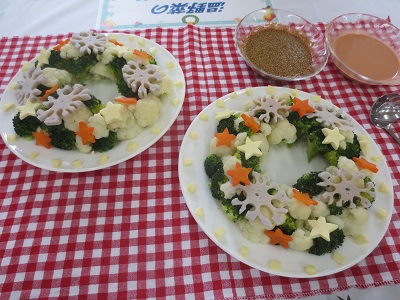 (副菜)じゃがいものクリスマススープ 温野菜のリースサラダ