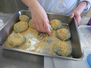 今回は、郷土料理作りです。 出身地の郷土料理から、鯛めし(愛媛県)・でこまわし(徳島県)・はんごろし(徳島県)の3品を実習しました。