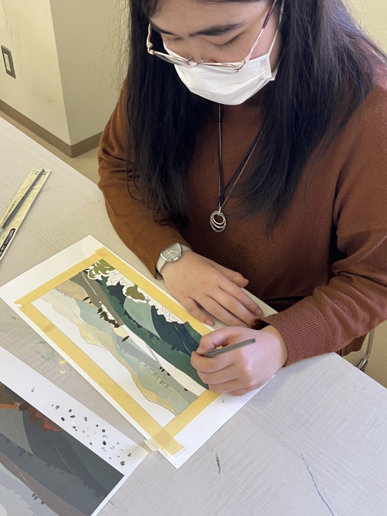 デザインアートワーク2年生の授業、着彩写生です。