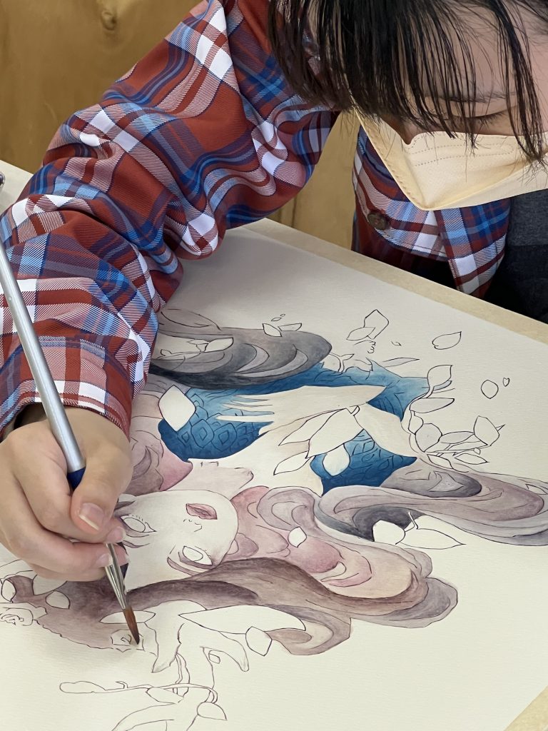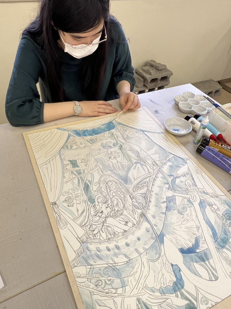 公開日 2022年05月31日 2年生デザイアートワークの授業「着彩写生」です。 下絵を描き終えると周囲をマスキングテープで留め、色をのせて行きます。 着色すると絵がパッと明るくなります! 出来上がりが楽しみですね!